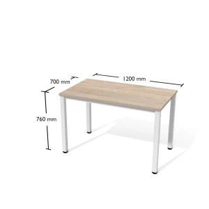 Biurko proste na konstrukcji metalowej. Blat prostokątny wykonany z płyty meblowej w klasie higieny E1.