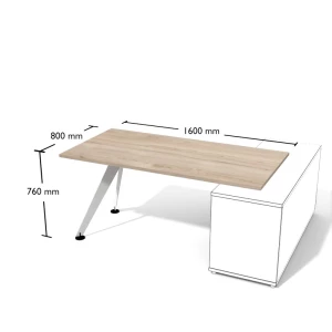 Biurko wymaga zastosowania dodatkowej szafki do podparcia z jednej strony. Szafka będzie stanowiła tzw. pomocnik, czyli wygodny i poręczny dodatek do stanowiska pracy.