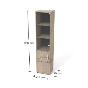 Regał aktowy wąski częściowo przeszklony.