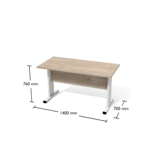 Stół na stelażu metalowym. Nogi w kształcie odwróconej litery "T" z perforowaną maskownicą zamykaną na wcisk, umożliwiającą poprowadzenie wewnątrz np. okablowania.