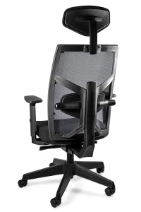 Regulowane i tapicerowane podparcie odcinka lędźwiowego na oparciu wykonanym z przewiewnej siatki może być kolejnym atutem dla wielu osób.