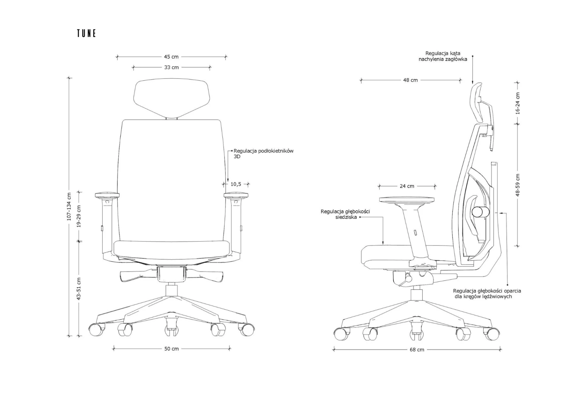- Regulacja kąta nachylenia zagłówka